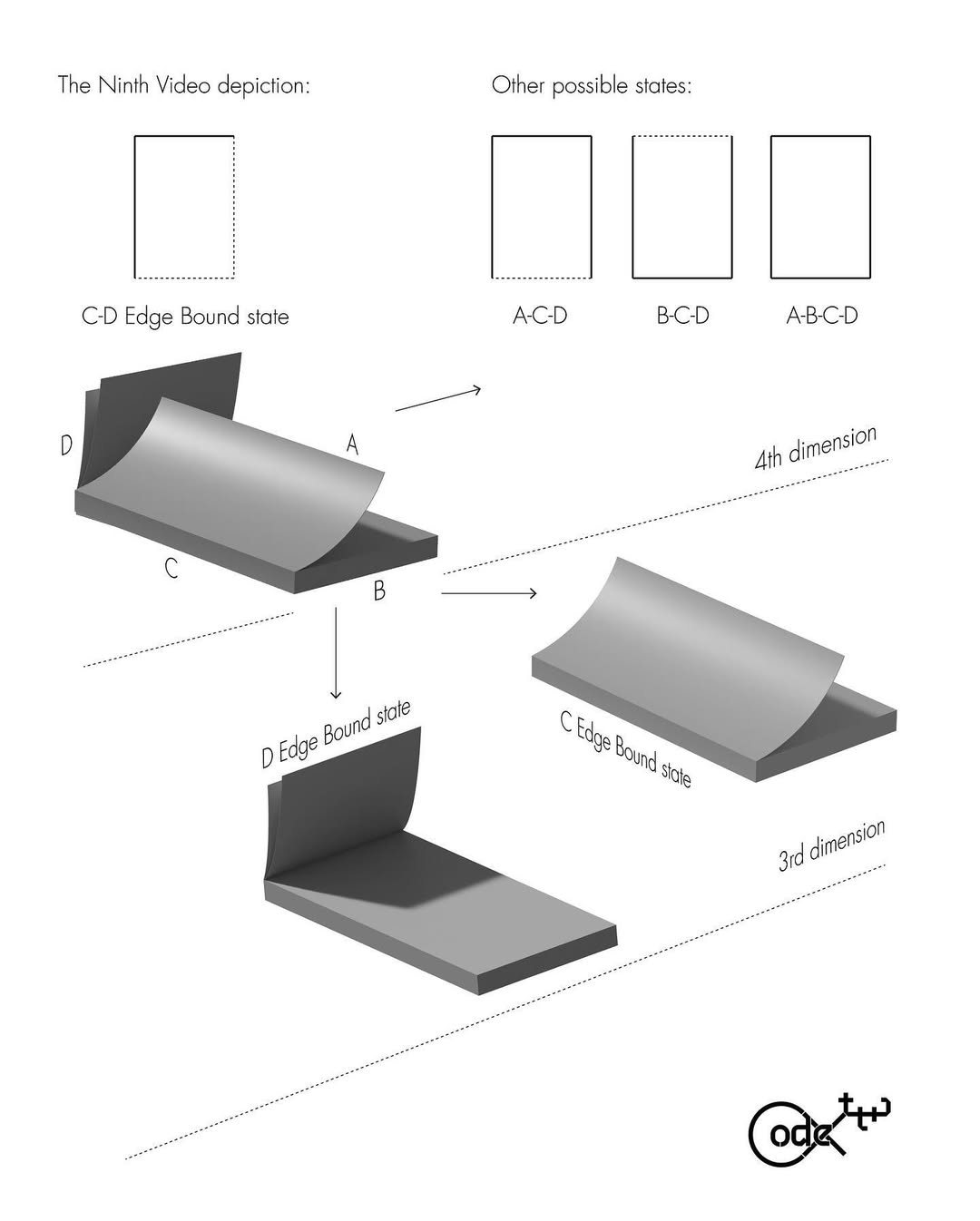 The 4D codex is bound at the spine, but not by time. It is bound with time, simultaneously remembering its past and its future. Here, the fourth-dimensional codex is printed with memories of a future form, but can also return to a previous state in the past.
