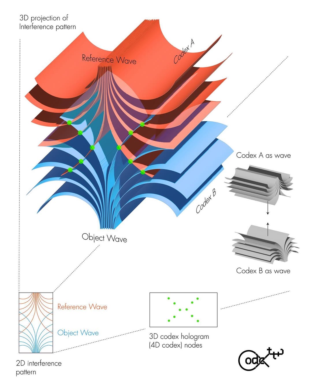 Artist illustrations of 4D codex captured via interferometry