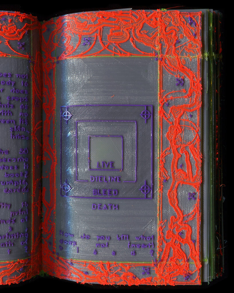 I have always been interested in the etymology of some technical terms used in commercial printing/design processes — “Live” area, “Bleed”, and “Die”lines — though not always intended as metaphors, there is a certain poetic quality to these connections between printed matter and living bodies, materiality and mortality; what we touch and what we feel.