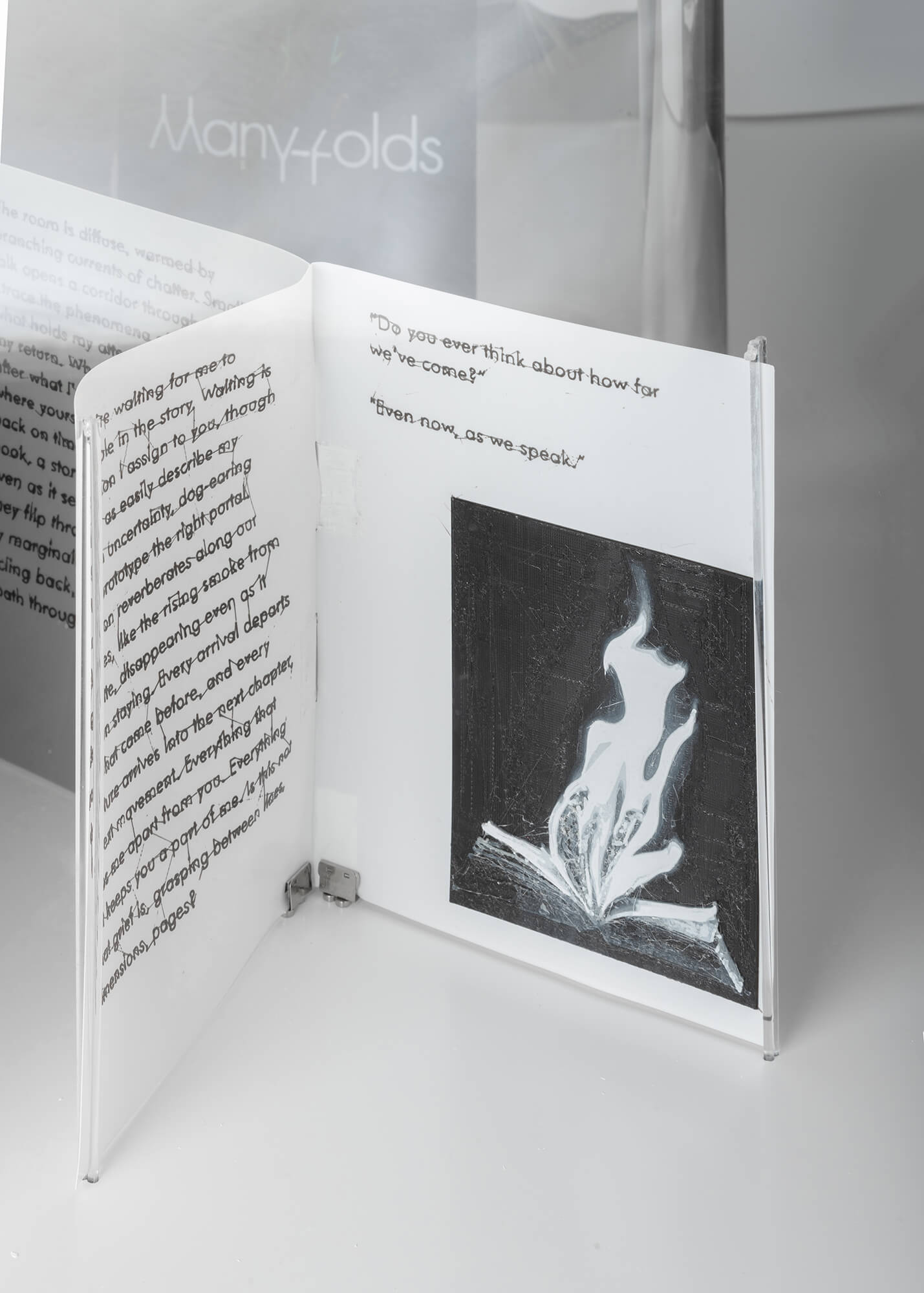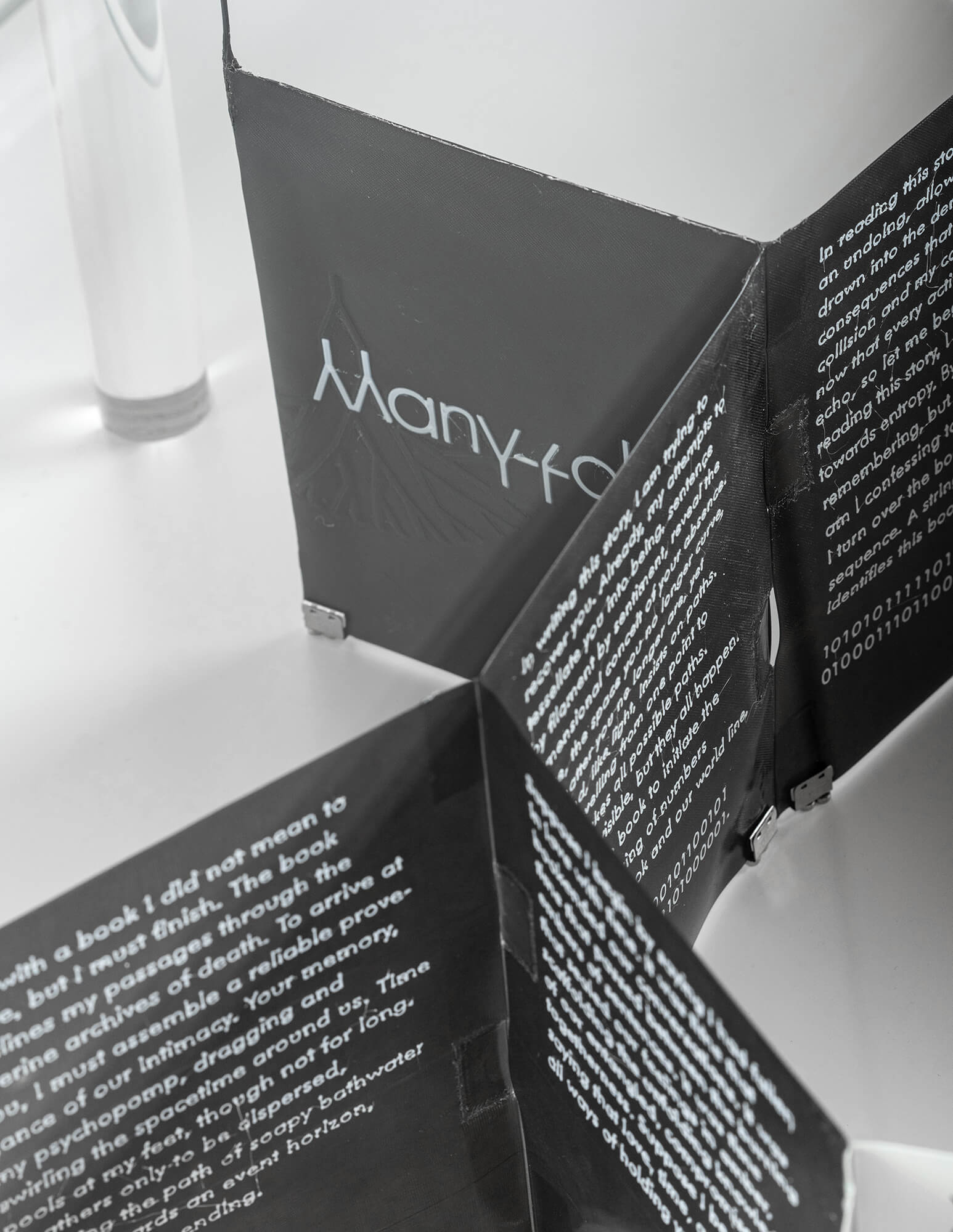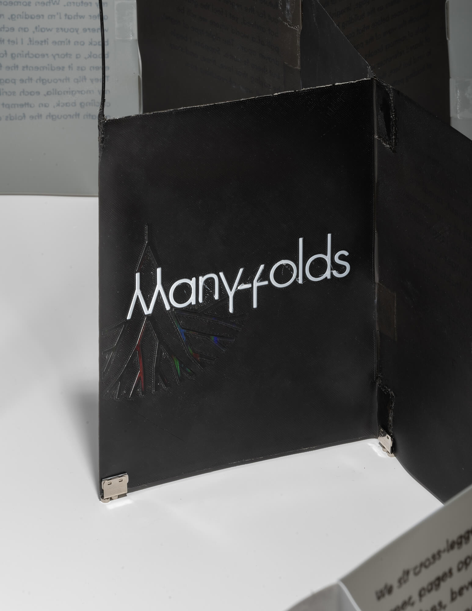 Many-Folds weaves together scattered yet kindred coordinates within a 3D printed book. It interleaves the Many-Worlds interpretation of reality as manifold with modes of making, reading, and writing that are themselves multilinear—branching, recursive, and manifold.