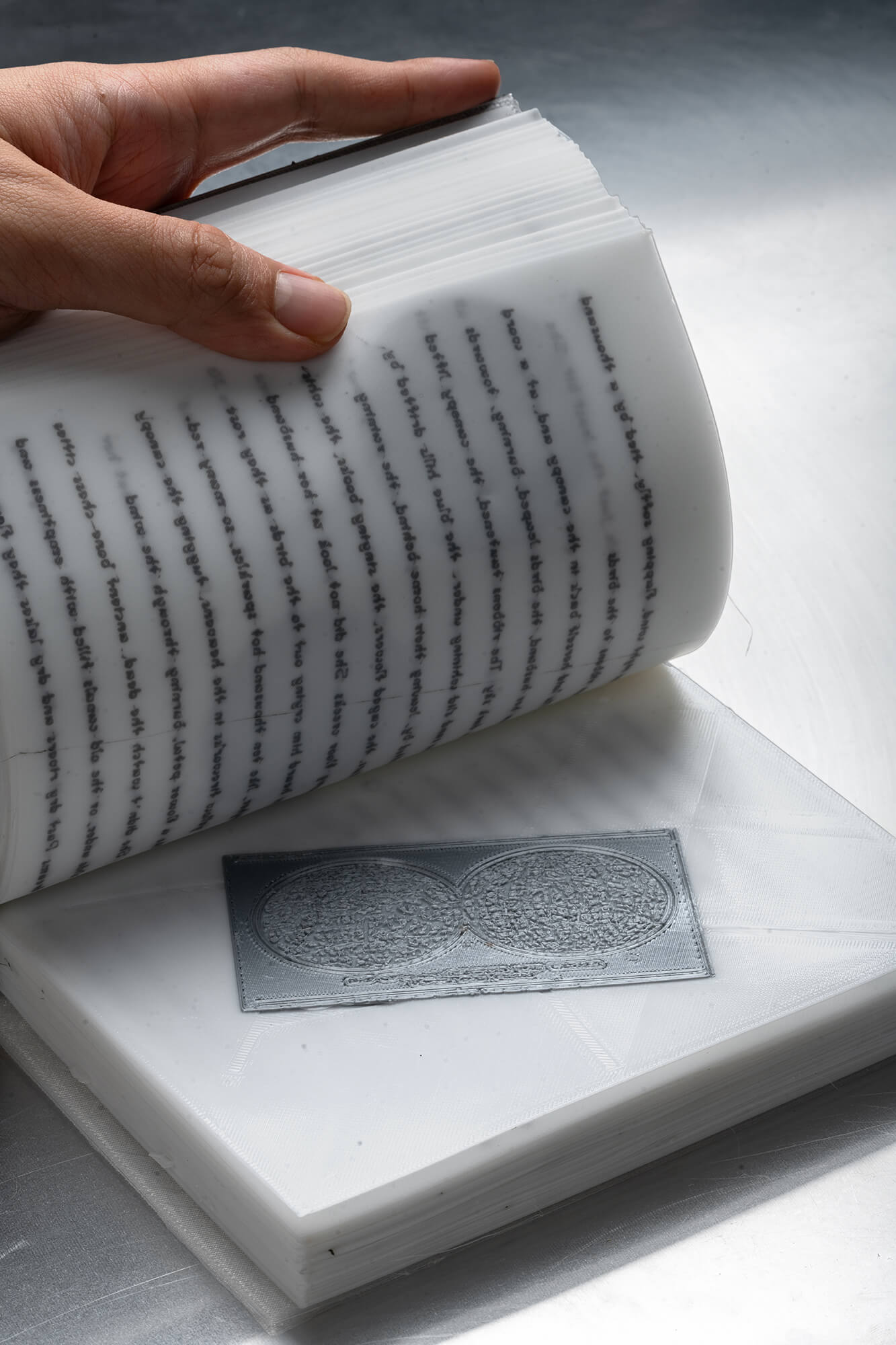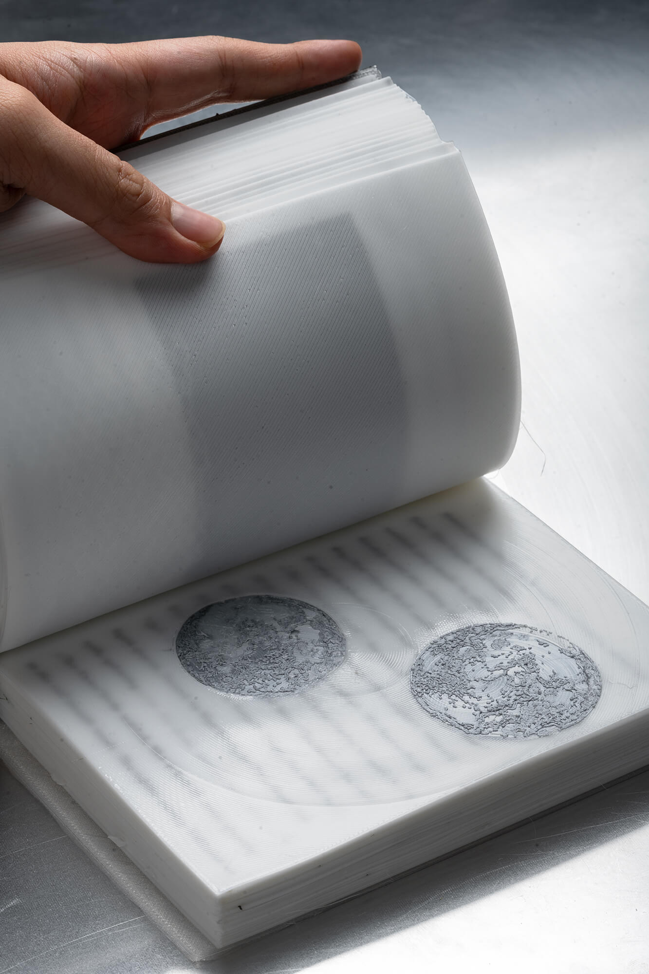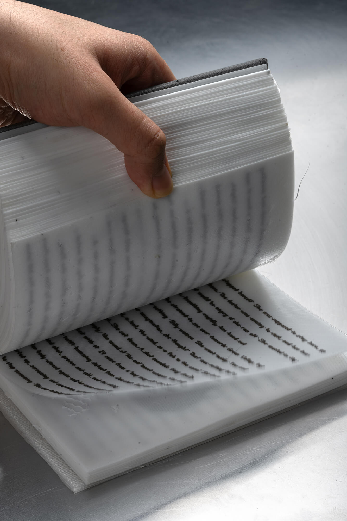Through the volumetric press, Bradbury’s speculative “multi-dimensional” book-object is no longer science-fiction but a plausible reality. A counterfactual object pressed through the page.