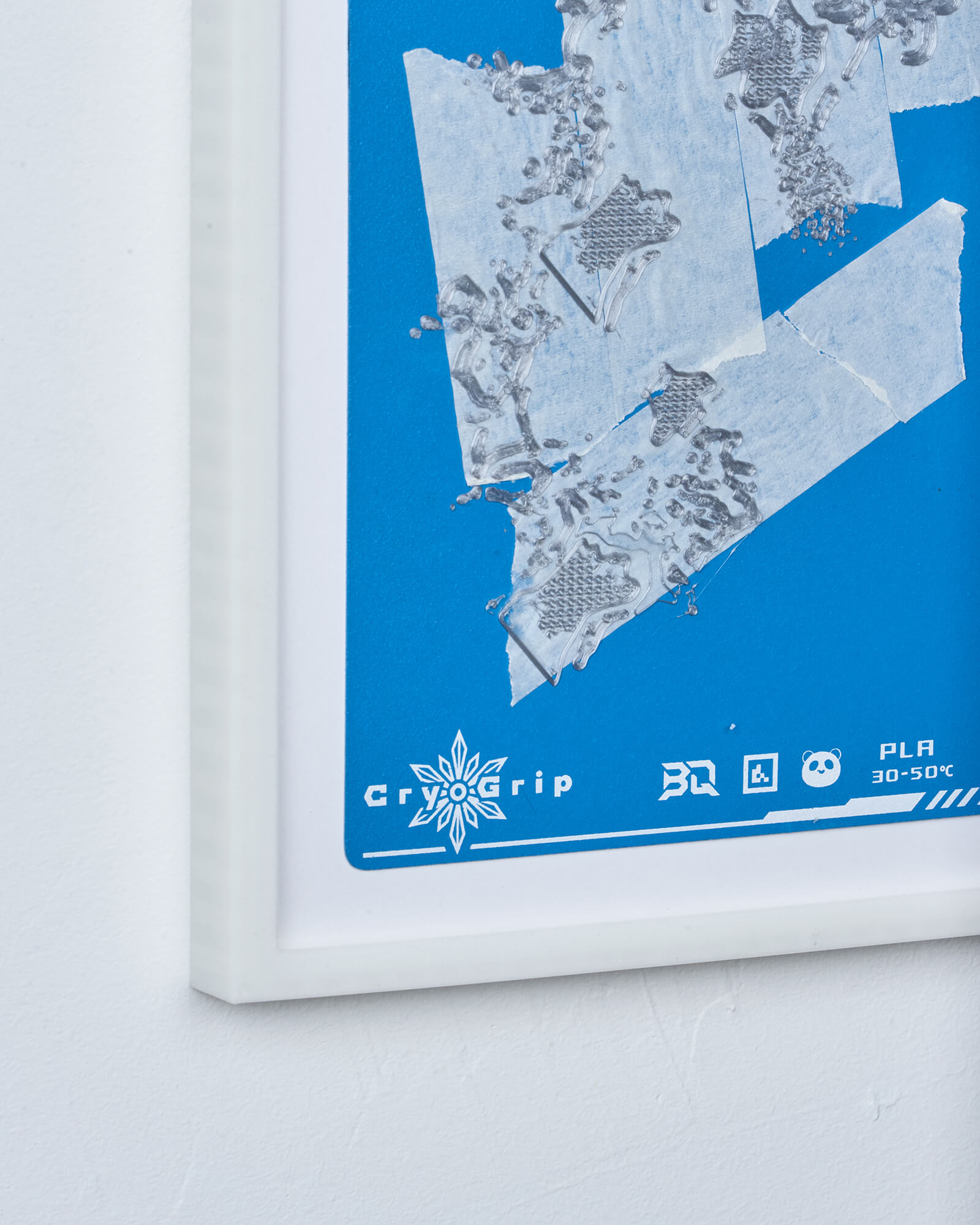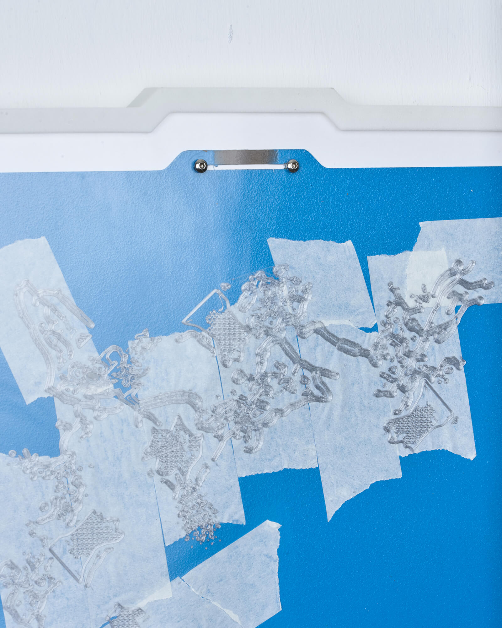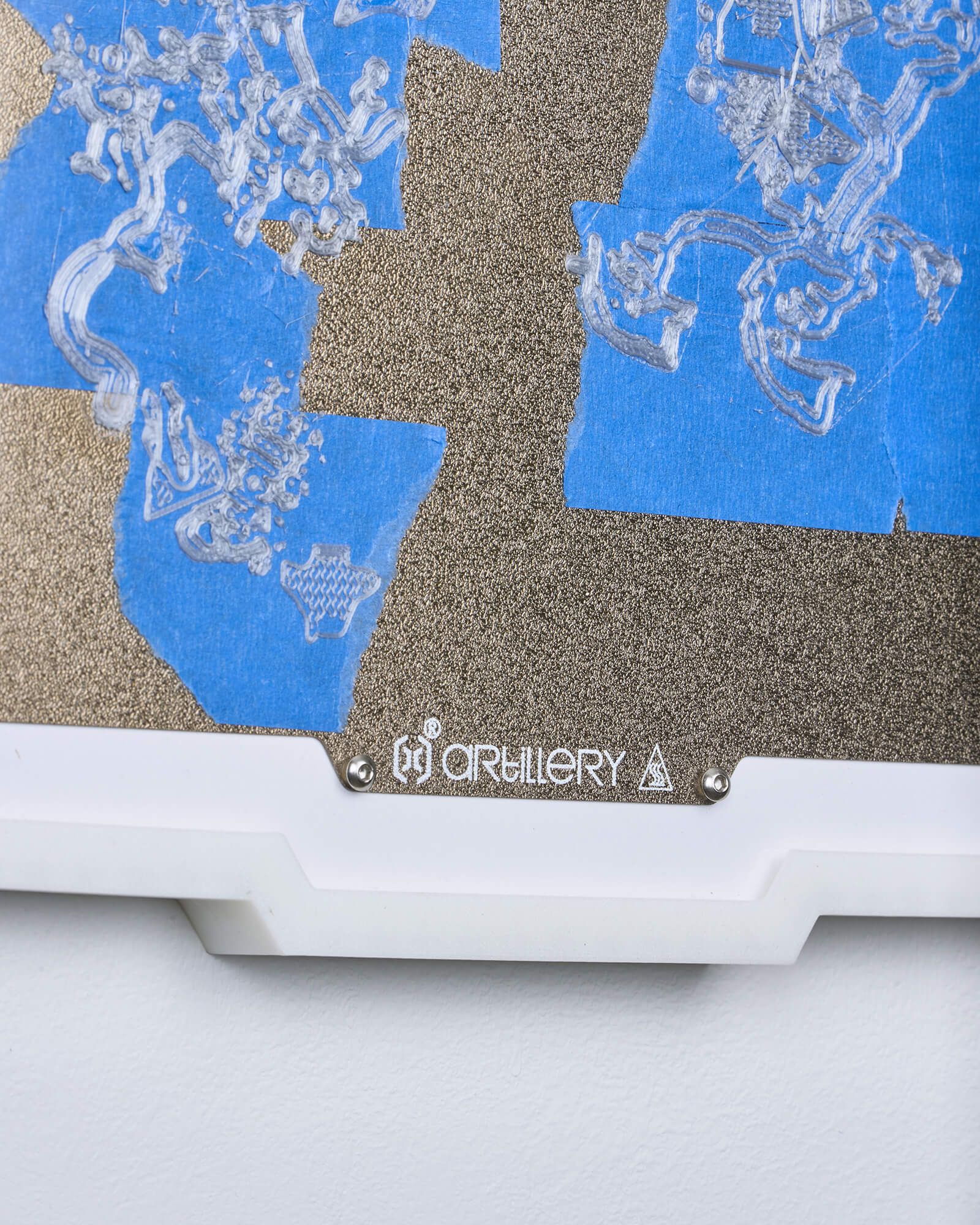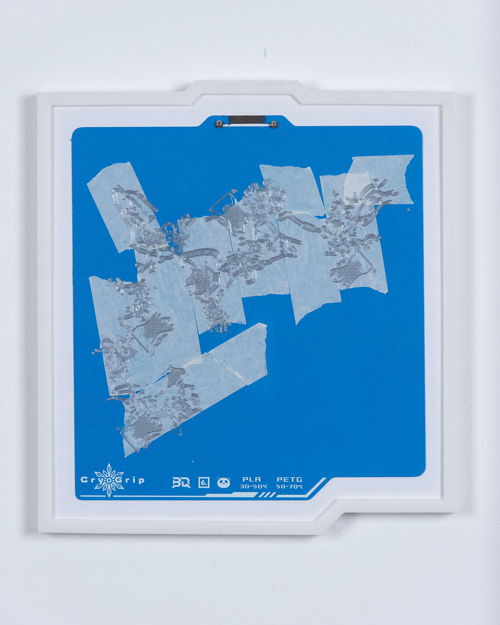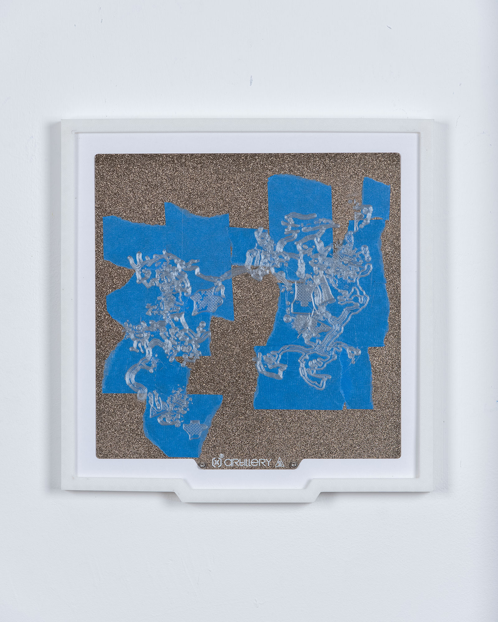The use of blue masking tape (commonly known as painter’s tape) dates back to the early days of desktop 3D printing, when print beds often struggled with adhesion issues. Applying painter’s tape to the build surface quickly gained popularity after it was found to both improve first-layer adhesion—dramatically increasing print success rates—and protect the bed from residue and wear. In this work, the presence of painter’s tape on this work’s 3D printing “canvas” is a direct nod to its namesake in painting (both as a tool of decorative painting and as an artistic medium), establishing a link between the practices of object-making and mark-making.