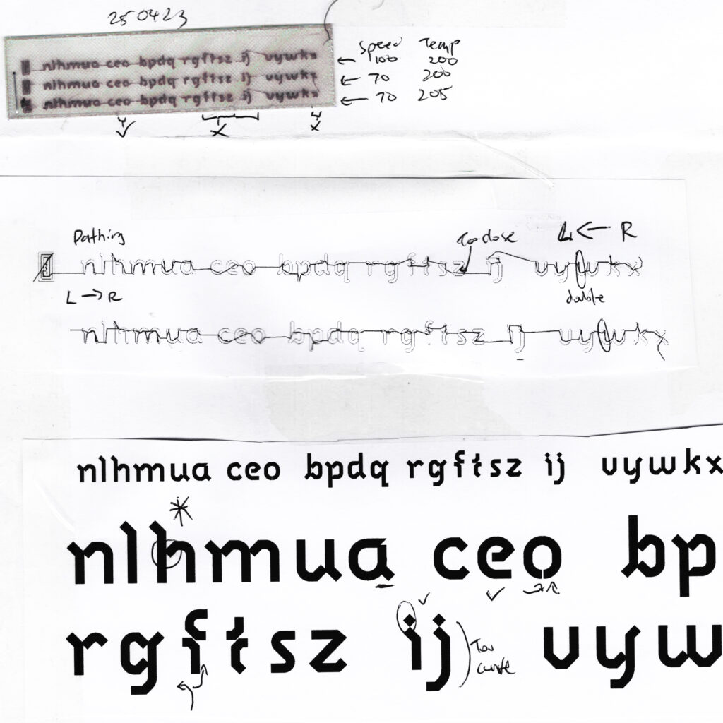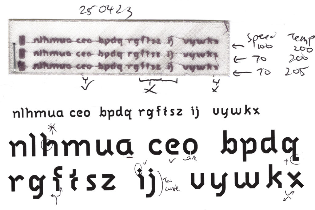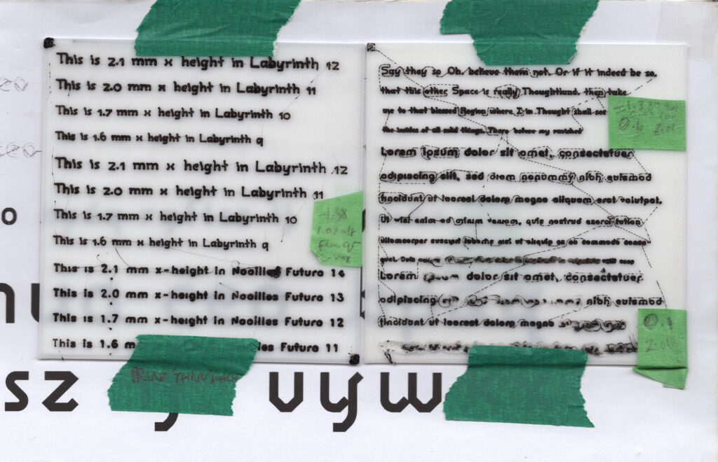Fig. 1. Early tests for Labyrinth, a purpose-built typeface for 3D printing small texts